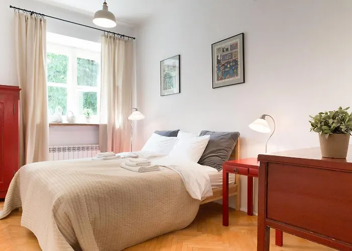 There are a microwave oven, a fridge, and kitchenware provided for guests at the apartment. Guests also make use of coffee and tea making facilities. The restaurant Fiesta i Siesta Spanish Restaurant is located approximately a 5-minute walk away. The apartment is about 5 minutes' walk from Nowy Zjazd 01 bus stop.